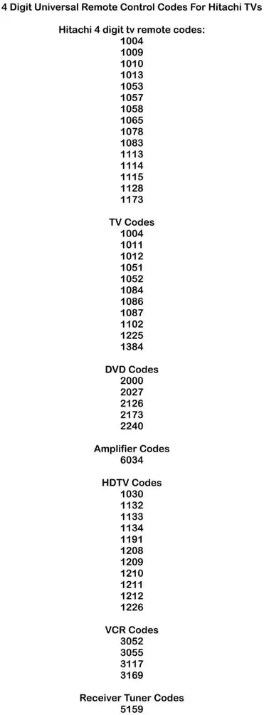 Remote Control Codes For Hitachi Tvs Codes For Universal Remotes